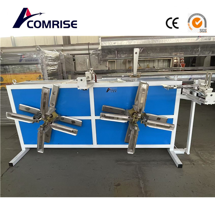 Produkční tok: surovina + hlavní šarže → Míchání → Vakuové krmení → Suchost materiálu → Jednotlivý extrudér → Vytvářená forma → Strosovací stroj na zvlnění → měřič měřiče → Dvojitý navíječ → Inspekce hotového produktu a balení