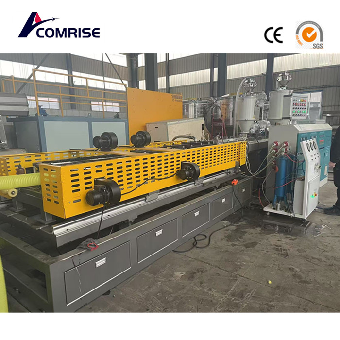 1. Dvojitý extruder, pokročilý design šroubu, zajišťuje vysokorychlostní vytlačování zvlněných trubek s dvojitou stěnou;