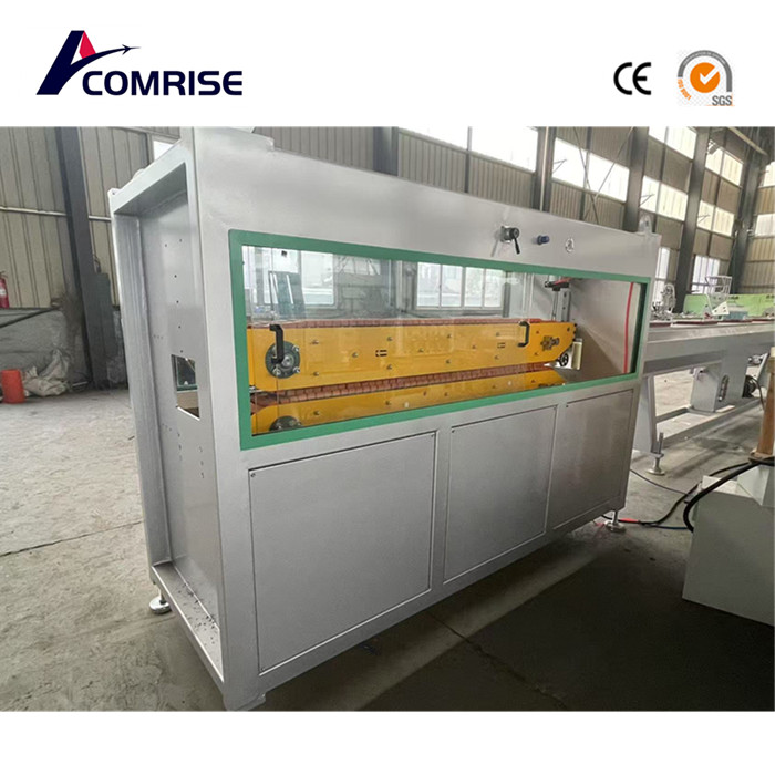 Plastové pelety → Vakuové krmení → Extrudér jednorázového šroubu → Označková linka CO Extruzní stroj → Plísně → vakuová nádrž → vodní chladicí nádrž → trakční stroj → řezací stroj → stohovač nebo automatický rozšiřování a vinutí stroje
