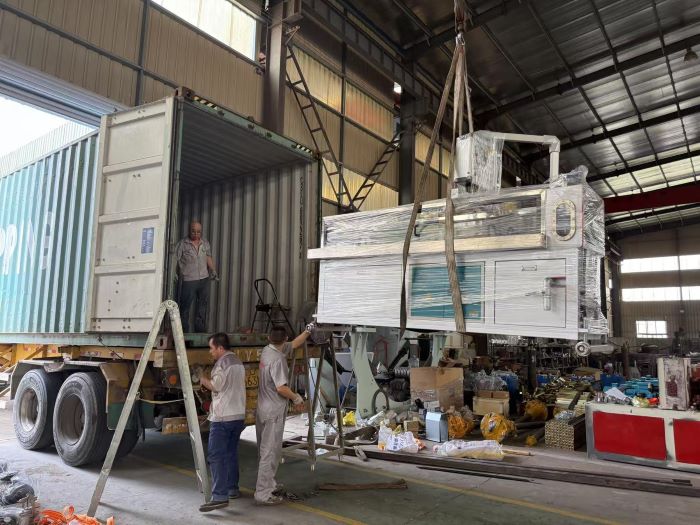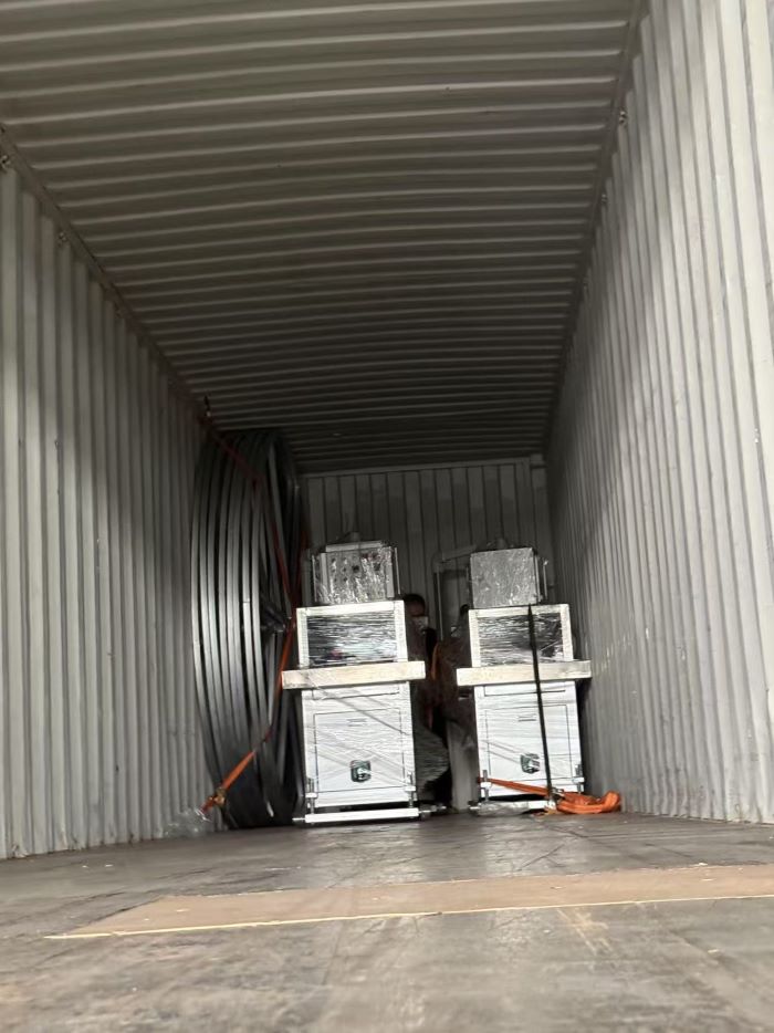 Přeprava na Střední východ, výrobní linka HDPE uhlíkové spirály, výrobní linka pro komunikační trubici COD.